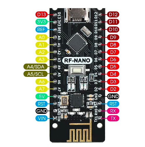 RF-NANO is a 2.4G wireless development board developed by emakefun company, integrating the nrf24L01+ wireless chip based on the official standard Arduino Nano V3.0 motherboard. Its size and pins are fully compatible with the standard Nano V3.0 development board, directly compatible with theRF24 open source library,can be set for power consumption, transmission rate, channel, etc., and supports Mixly, Mblock5, Magicblock visual programming. The onboard antenna is optimized for transmission distance up to 30m, with a onboard IPEX patch antenna socket, and an external antenna can achieve a transmission distance of up to 100m.